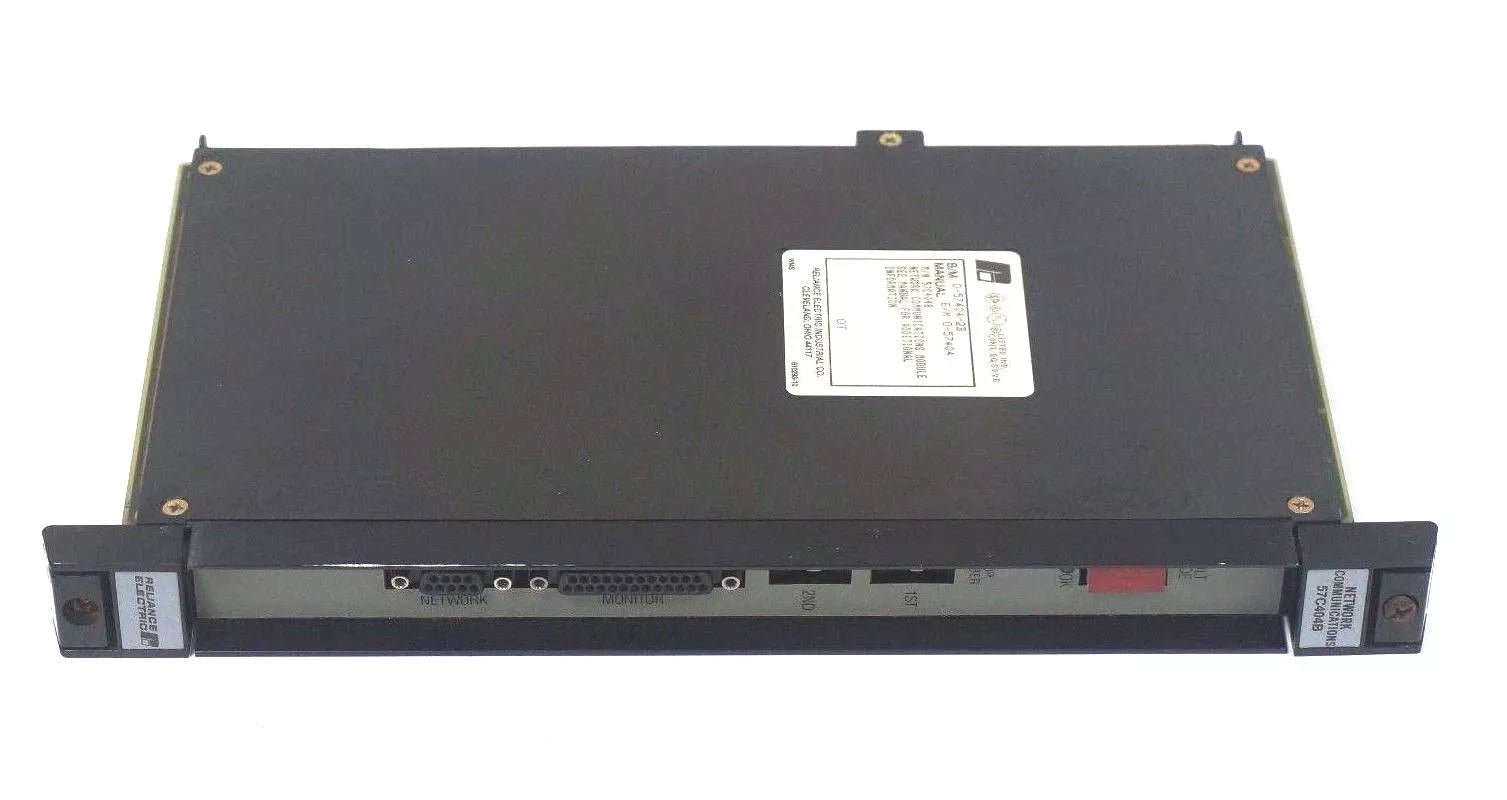 The Reliance Electric 0-57404-2B is a communication network module designed for the AutoMax PLC series, enabling data exchange between multiple AutoMax racks in distributed control systems. It features RS-232 asynchronous communication, configurable network addressing, and real-time error diagnostics, making it ideal for industrial automation and process control applications.