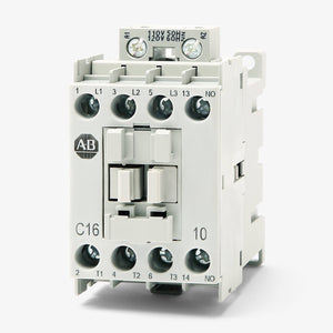 The 100-C16D10 is part of the Allen-Bradley MCS-C IEC contactor series, tailored for controlling three-phase motors with a rated current of 16 A at 400 VAC. Designed to operate on a 110V AC coil at 50/60 Hz, this contactor includes 1 normally open (NO) auxiliary contact for signaling or interlocking functions.