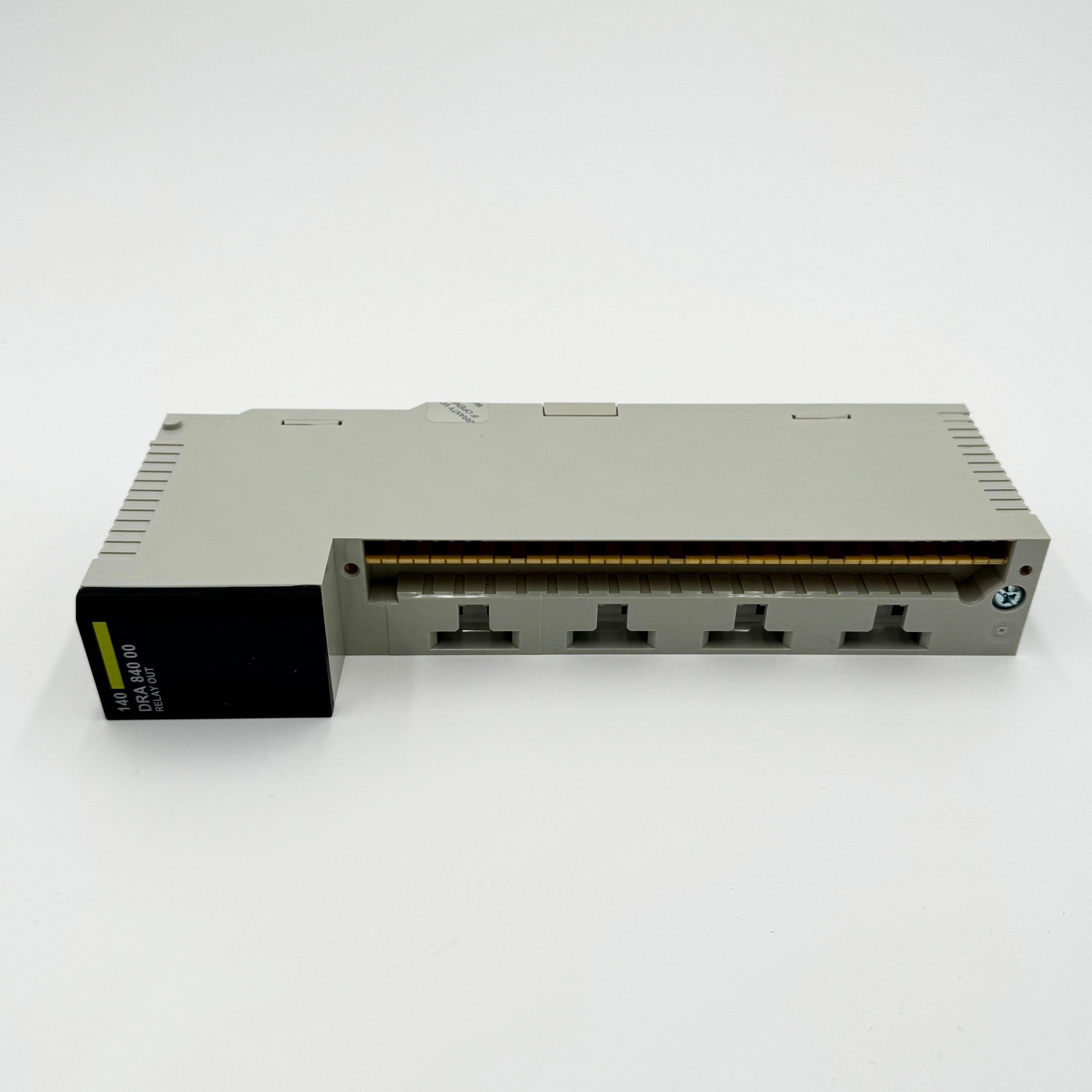 The Modicon 140 DRA 84 000 16-point output module is manufactured by Schneider Electric for use on the Modicon Quantum platform. The 140DRA84000 is a relay output 16 x 1 normally open module that consists of a standard module format, weighs less than one pound, and has a bus current requirement of 1,110 mA. It also has a 10 A, 10 ms surge capacity and the switching capacity in VA is 500 VA resistant.