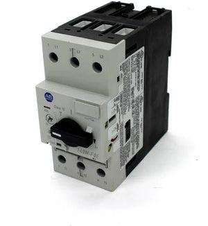 The Allen-Bradley 140M-F8E-C45 is a 3 phase thermal-magnetic motor protective device incorporating adjustable bimetal trips for motor overload protections and magnetic trips to de-energize the motor circuit in case of a short circuit.