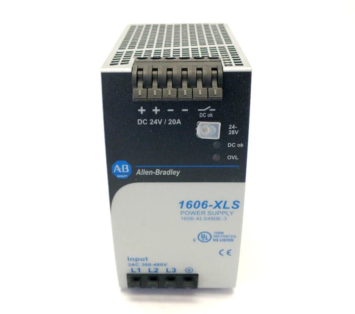 The Allen-Bradley 1606-XLS480E-3 is an industrial power supply designed for reliable 3-phase AC to DC conversion. It provides 24V DC output at up to 20A (480W) for powering automation devices, controllers, and I/O systems.