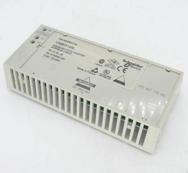 The Schneider Electric 170INT11000 is a Modicon Momentum Interbus communication adaptor for twisted pair wiring, enabling seamless communication in industrial automation systems.