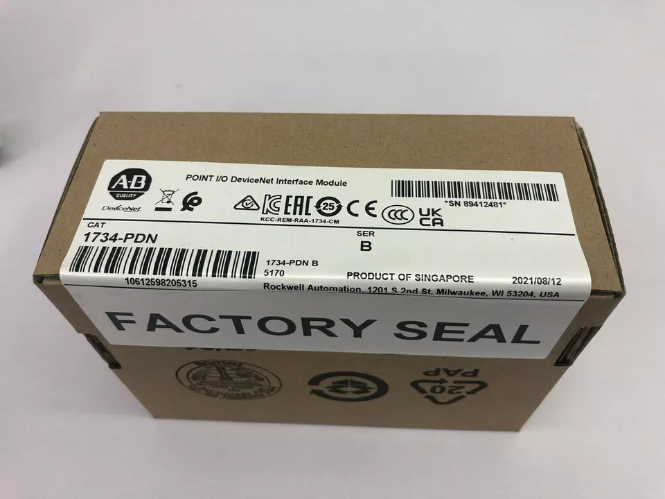 The Allen-Bradley 1734-PDN is a POINT I/O DeviceNet adapter and communication interface module. It operates on 24V DC input and provides up to 1.3 A POINTBus current for connected I/O modules. This unit enables integration of distributed I/O over DeviceNet networks and is widely used in factory automation and process control systems.