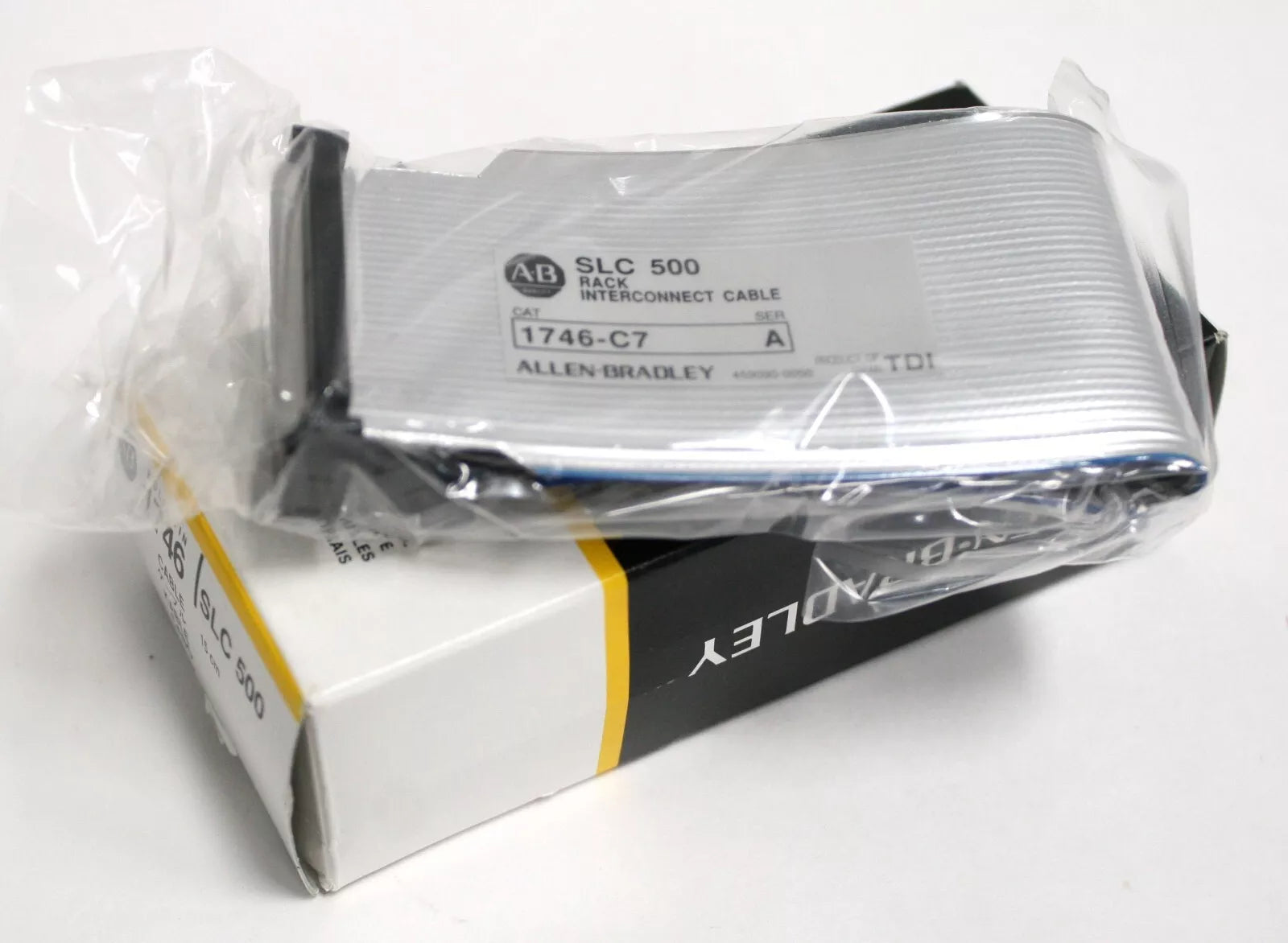 The Allen-Bradley 1746-C7 is a chassis interconnect cable from the SLC 500 series. It is a 0.5-foot (0.15 m) ribbon cable designed to connect controllers and chassis side by side in industrial control systems.