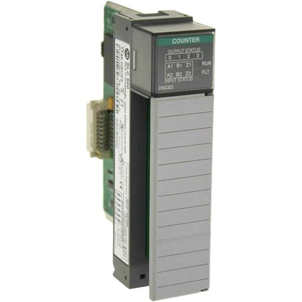 The Allen-Bradley 1746-HSCE is a High-Speed counter module from the SLC 500 Product family. This module is installed to any type of SLC500 chassis and mounted directly to an available slot. It may be installed locally, along the SLC500 CPU, or remotely along a SLC500 communication adapter.