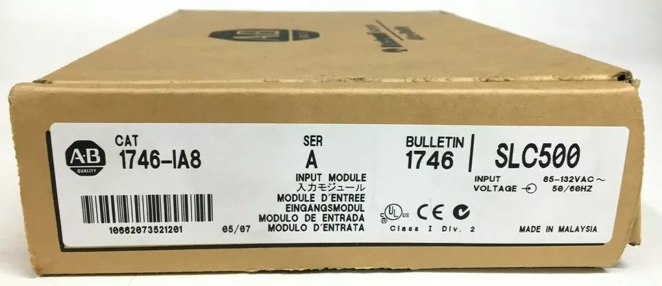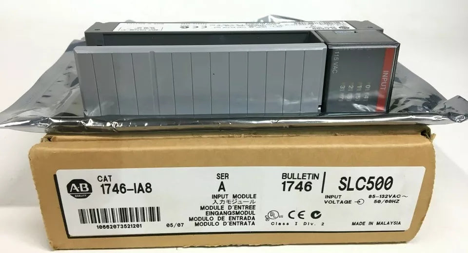 The Allen-Bradley 1746-IA8 is an AC digital input module from the SLC 500 series. It provides 8 input channels rated for 100–120V AC operation and is designed for reliable integration into industrial control systems.