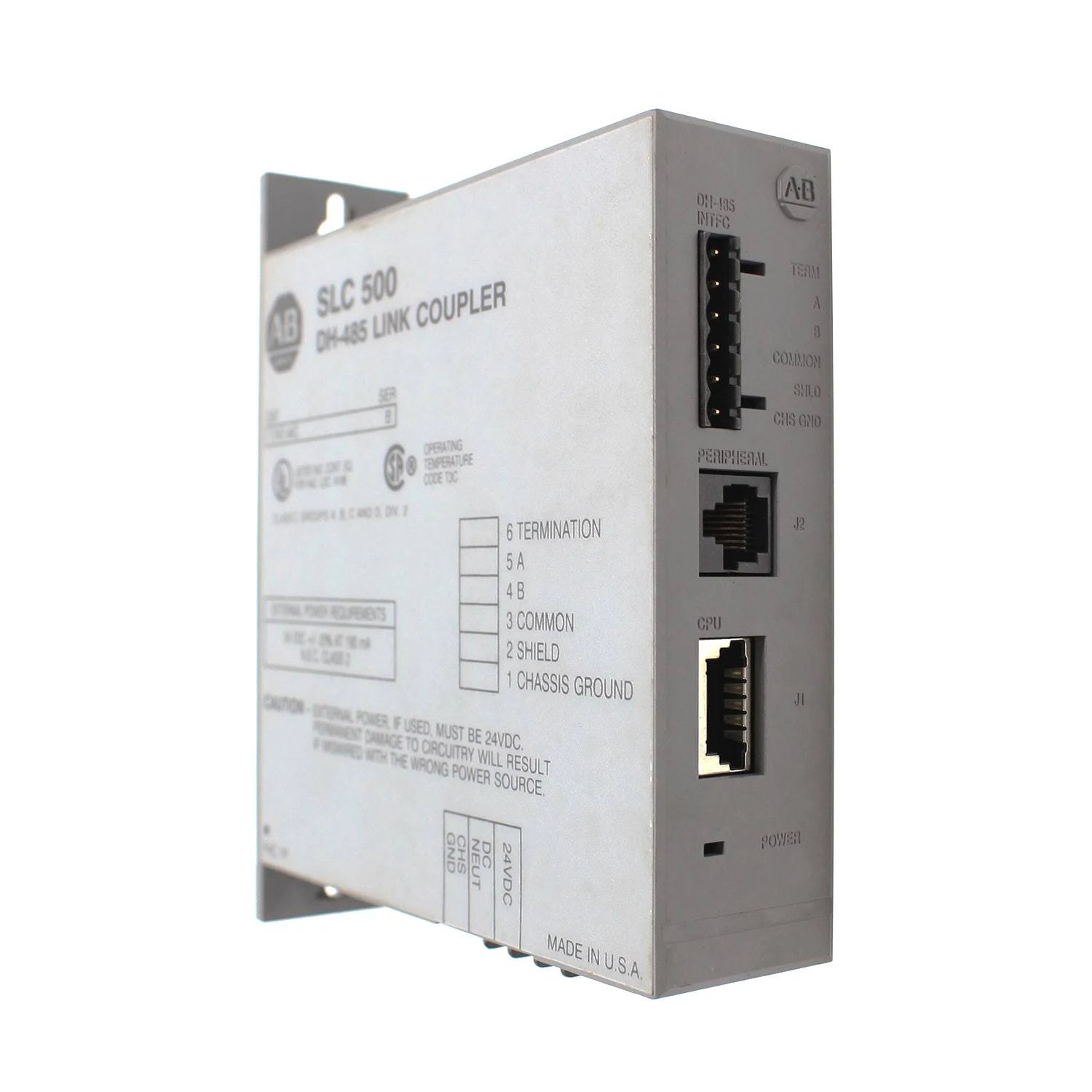The 1747- Advanced Interface Converter (AIC) Link coupler which allows an SLC 500 fixed style or modular style processor to be communicated or multiplexed with a programming workstation, DH485 network and compatible devices.