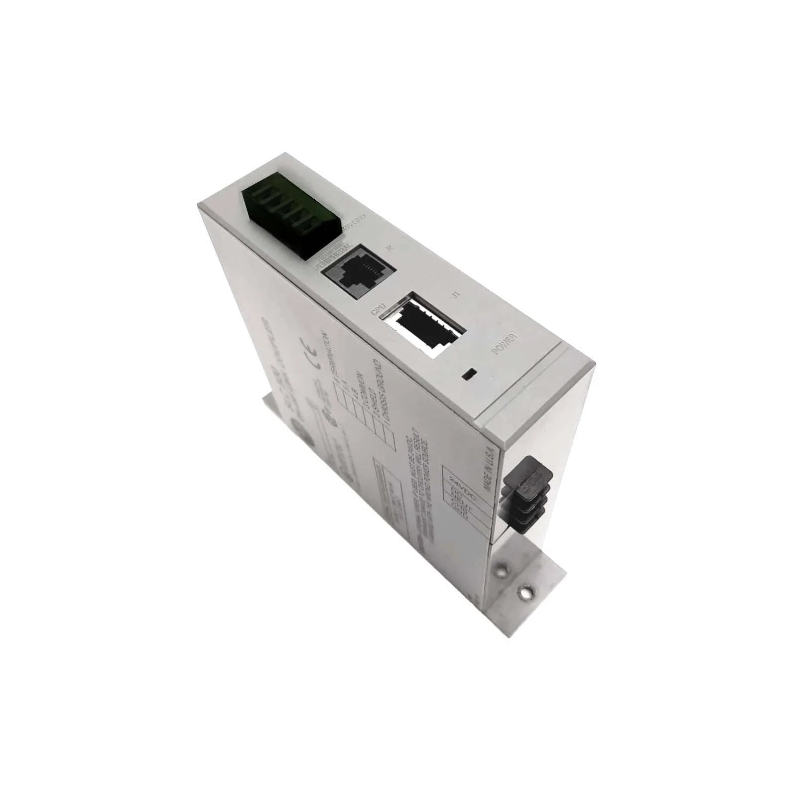 This Link Coupler is a panel mounted device. It has a DH485 communication terminal, Peripheral connection and a CPU port. It also has a LED indicator to provide power supply feedback.