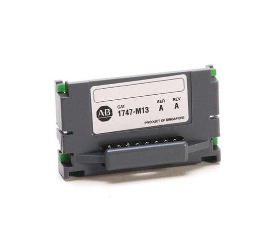 The Allen-Bradley 1747-M13 is a SLC 500 Memory Device. This Memory Device has Flash Memory Type and 64 kilobytes of Memory. This module is intended for Program/Data Table Storage and compatible for use with SLC 5/03, SLC 5/04 and SLC 5/05 processors.