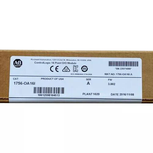The Allen-Bradley 1756-OA16 is a ControlLogix digital AC output module with 16 channels. It is designed to switch AC loads in the 74–265 VAC range at 47–63 Hz, making it suitable for controlling solenoids, relays, and contactors. With LED channel status indicators and integrated fault detection, the module provides reliable operation in both local and remote ControlLogix chassis.