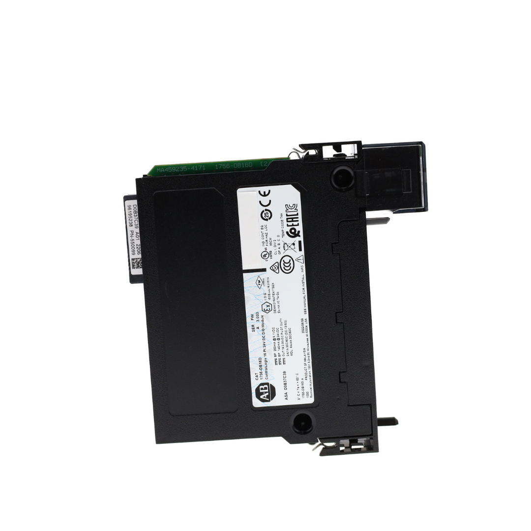 The Allen-Bradley 1756-OB16D is a ControlLogix digital DC output module designed for high-performance output control. It provides 16 sourcing output channels with diagnostic capabilities for real-time monitoring and fault detection.