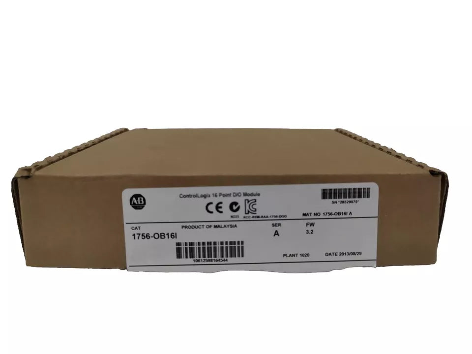 The 1756-OB16I is part of the Allen-Bradley ControlLogix family, developed to deliver flexible, high-performance output control. It supports 16 isolated outputs, each rated for up to 2 A at 30 °C or 1 A at 60 °C, with a maximum module current of 8 A at 30 °C and 4 A at 60 °C. Outputs are configurable for fault and program modes, with options including hold last state, ON, or OFF. The module operates with fast response times, featuring 1 ms OFF-to-ON and 2 ms ON-to-OFF switching. It requires a 1756 chassis and compatible RTBs such as the 1756-TBCH or 1756-TBS6H for wiring. The 1756-OB16I provides diagnostic LEDs for status indication, supports direct-connect or rack-optimized communication formats, and synchronizes scheduled outputs with the ControlLogix system clock. It also offers surge protection of up to 4 A for 10 ms per point, repeatable every 2 seconds. With industrial certifications including UL, CSA, CE, and ATEX, the module is suitable for standard and hazardous location applications.