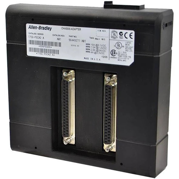 The Allen-Bradley 1756-PSCA2 is a chassis adapter module used to funnel power from one or two redundant power supplies into the single power connector on the chassis backplane. It is an essential component in building ControlLogix Redundant Power Supply Systems. Only one of these is required to create a system, and it is compatible with Bulletin 1756-PA75R and 1756-PB75R power supplies.