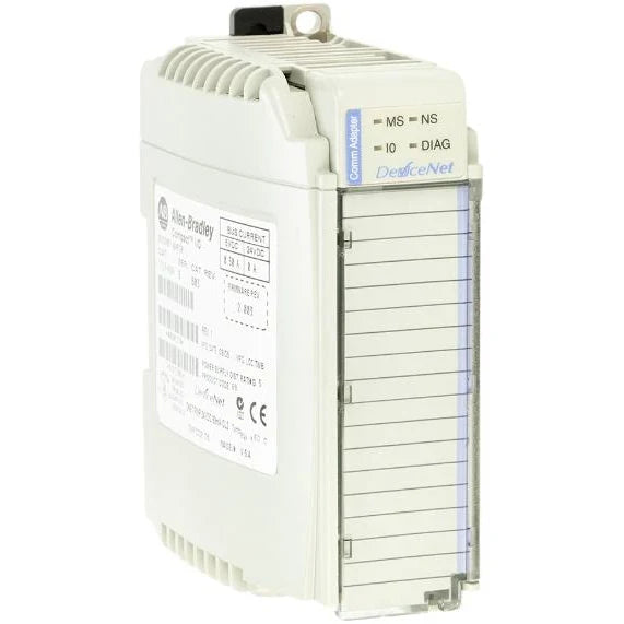 The Allen-Bradley 1769-ADN is a DeviceNet adapter that is compatible for use with 1769 CompactLogix or MircoLogix 1500 automation platforms. This module permits a controller or any compatible device to communicate and exchange data with field instruments and computer-based control system through the DeviceNet protocol.