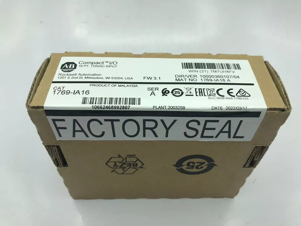 The 1769-IA16 is part of the Allen-Bradley Compact I/O 1769 series, developed for use with CompactLogix and MicroLogix 1500 controllers. This module features 16 AC inputs rated for 120V AC nominal voltage, providing reliable signal detection from field devices. It communicates with the controller through the 1769 backplane, allowing seamless integration into Compact I/O systems. The module includes removable terminal blocks for simplified wiring and built-in status indicators for channel diagnostics. Designed for DIN rail or panel mounting, the 1769-IA16 is well-suited for distributed control applications where space efficiency and reliability are essential.