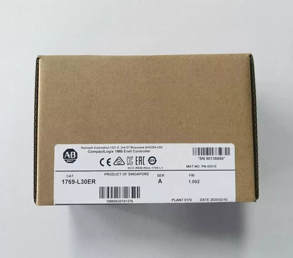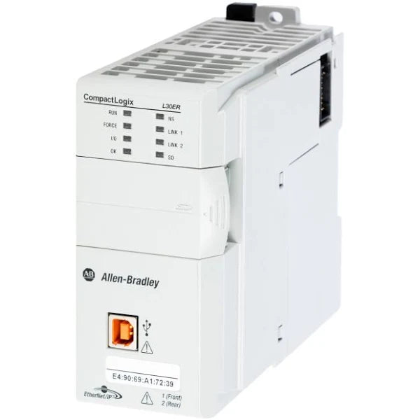 The Allen-Bradley 1769-L30ER is a CompactLogix 5370 programmable automation controller (PAC) designed for mid-range machine and process control. It provides 1 MB of user memory, dual EtherNet/IP ports, and support for up to 16 expansion I/O modules.