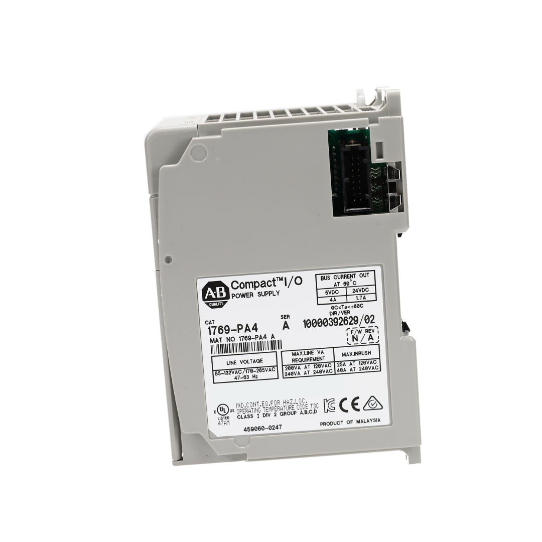 The 1769-PA4 delivers the stable and reliable power required to operate CompactLogix controllers and I/O modules in industrial automation systems.