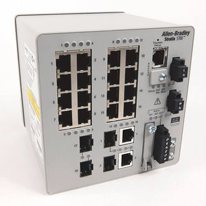 The Allen-Bradley 1783-BMS20CGL Stratix 5700 Ethernet Switch is a robust 20-port switch with 2 SFP ports. Ideal for industrial networks, it combines high-performance Ethernet connectivity with versatile fiber optic options, ensuring reliable and efficient data transfer in demanding automation environments.