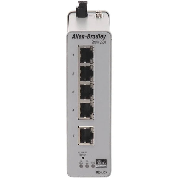 The Allen-Bradley 1783-LMS5 Stratix 2500 Lightly Managed Ethernet Switch is a versatile 5-port switch tailored for industrial networking. With a focus on simplicity and reliability, this switch combines essential managed features with ease of use, making it an ideal solution for small to medium-sized industrial networks.