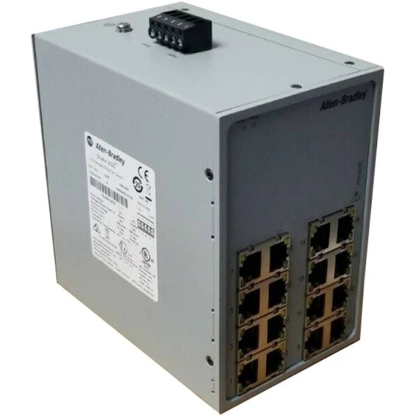 The Allen-Bradley 1783-US16T is a Stratix 2000 unmanaged Ethernet switch with 16 Fast Ethernet ports. It provides simple and reliable network connectivity for industrial environments, operating with 12–48 VDC or 18–30 VAC power inputs.