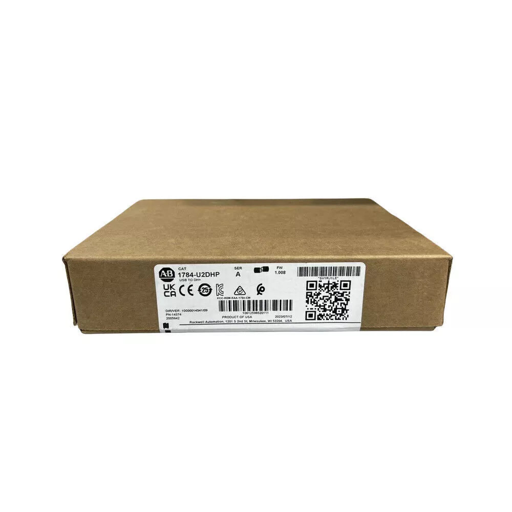 The Allen-Bradley 1784-U2DHP is a USB-to-Data Highway Plus (DH+) communication interface cable. It allows a computer or programming workstation to connect directly to a DH+ network through a standard USB port. This portable adapter is widely used for configuring, programming, and troubleshooting PLC-5 and SLC 5/04 controllers in industrial automation environments.