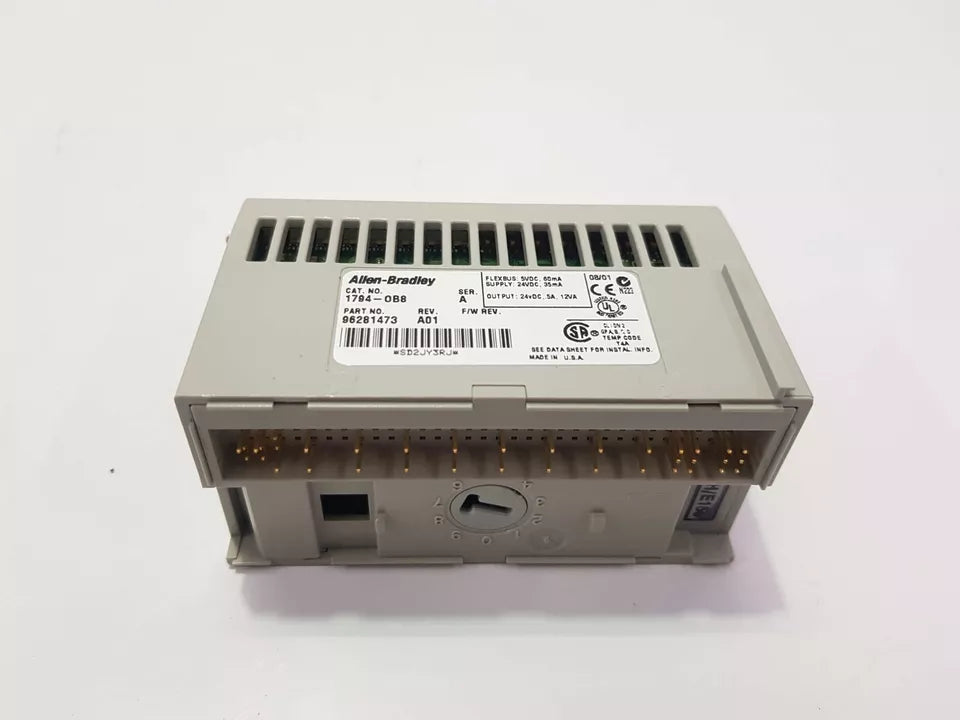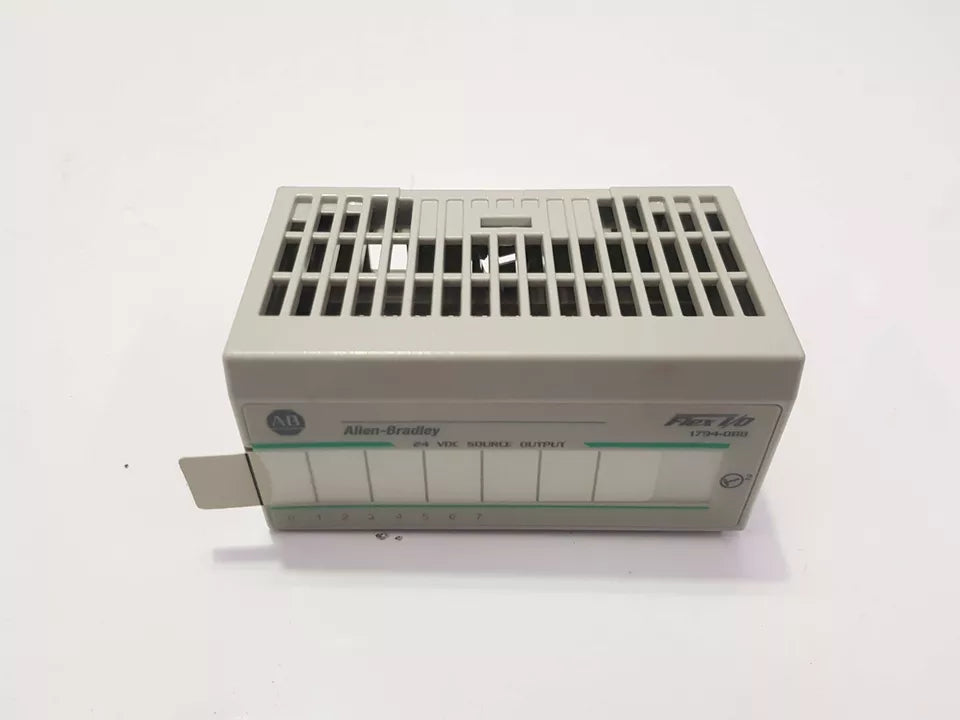 The Allen-Bradley 1794-OB8 is a FLEX I/O discrete DC output module with 8 sourcing output points. It delivers 24V DC nominal output signals for driving field devices and supports DIN rail mounting in an open-style, IP20-rated design. This module is widely used in distributed control, machine automation, and process applications where modular and flexible I/O is required.