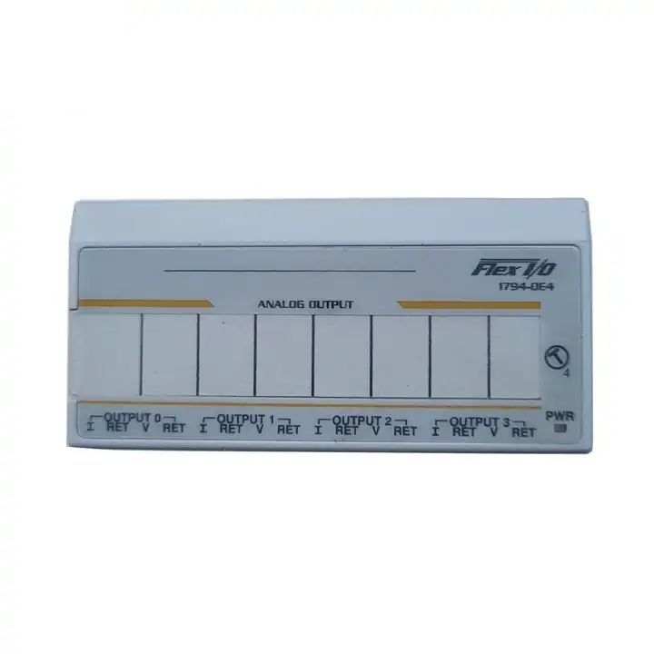 The Allen-Bradley 1794-OE4 is a Flex I/O analog output module designed for distributed control applications. It provides four single-ended analog output channels that deliver current and voltage signals for precise process control. This module is commonly used in industrial automation to drive devices such as VFDs, valves, and other final control elements.