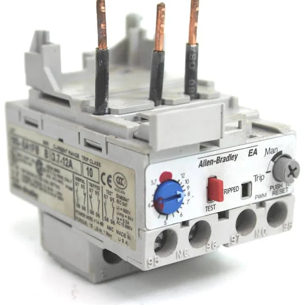 The Allen-Bradley 193-EA1FB relay is an electronic motor protection overload relay. This overload protection relay has an adjustment range of 3.7 to 12 Amps and a trip class of 10. It is compact in its size with a visible trip indicator.
