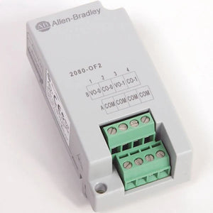 The Allen-Bradley 2080-OF2 is a Micro800 2-Channel Analog Current/Voltage Output Module designed for industrial applications. This module facilitates analog signal processing by offering two output channels capable of generating current or voltage signals. It operates in a unipolar configuration with output ranges of 0-10V and 0-20mA.