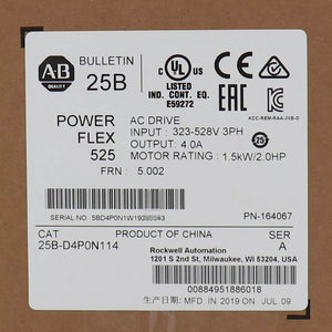 25B-D4P0N114 | Allen-Bradley PowerFlex 525 AC Drive 480V, 3-Ph, 1.5kW, 2HP