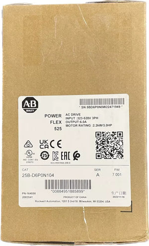 The Allen-Bradley 25B-D6P0N104 is a PowerFlex 525 AC drive designed for compact and versatile motor control. It delivers 480V AC, three-phase input with a 2 HP (1.5 kW) output capacity at 6.0A.