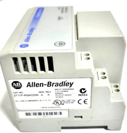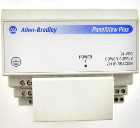 The 2711P-RSACDIN is a compact AC-to-DC power supply module designed for use with Allen-Bradley PanelView Plus 700 to 1500 operator terminals. It delivers reliable 24V DC output power from a wide AC input range, ensuring stable performance in industrial environments.