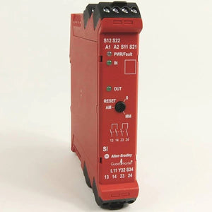 The 440R-S12R2 is part of the Allen-Bradley Guardmaster safety relay family, offering simple and dependable safety monitoring for machines and equipment. It supports a dual-channel universal input configuration, making it suitable for monitoring emergency stops, gate switches, and other safety input devices. With two normally open safety outputs and one solid-state normally closed auxiliary output, the relay provides flexibility for integration into safety circuits and status indication. It features selectable reset modes including automatic, manual, and monitored reset, ensuring compliance with different safety application requirements. The relay consumes only 2.5 W, operates on 24V DC, and uses screw terminal connections for secure wiring. Built for reliability, it enhances personnel and machine safety in industrial environments.