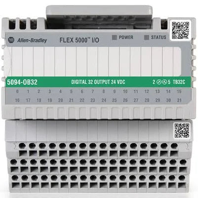 The 5094-OB32 module is a digital I/O module. It is a FLEX 5000 series device manufactured by Allen-Bradley.