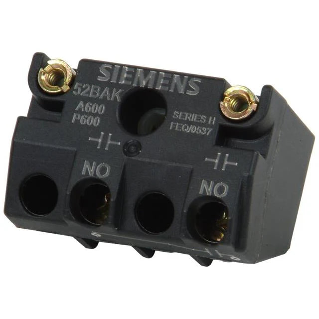Overall, the Siemens 52BAK contact block delivers heavy-duty performance, reliable contact operation, and easy installation, making it an essential component for industrial control systems using 30 mm pushbutton operators.