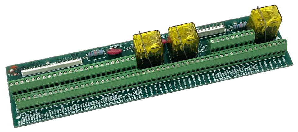 The GE Terminal Board Relay Card 531X171TMAAEG2 contains interface circuitry and the connection terminals for most signal I/O. The board connects to the drive control board through cables.