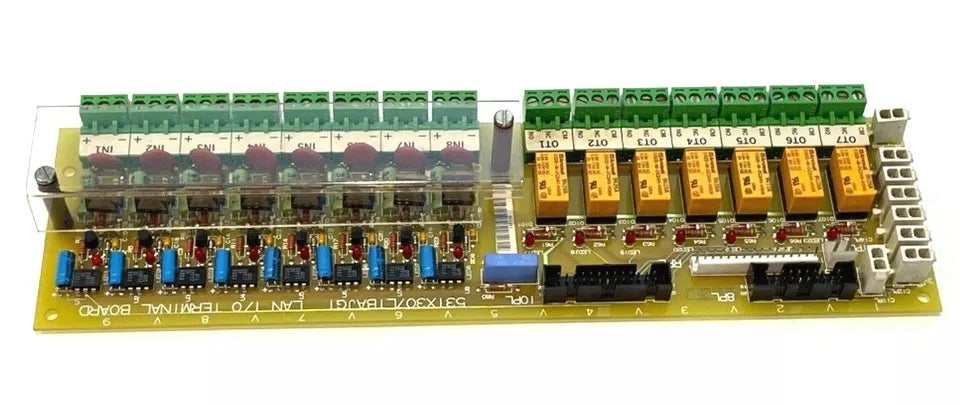 The 531X307LTBAJG1 LAN Terminal Board is a product designed by General Electric. This board is categorized under the 531X family of replacement boards. It is intended for use in drives and exciters across the GE series, where it can be installed within the equipment cabinet. The primary function of this LAN terminal board is to serve as an interface system between external devices and the controlling drive. This allows peripheral devices, such as interlocks, pushbuttons, and indicator lights, to connect and communicate with the main control system through the board.