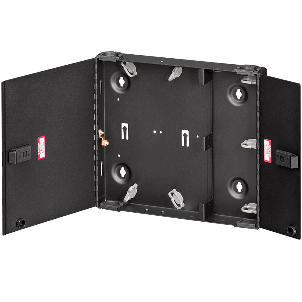 The Leviton 5WSML-2C is a compact fiber optic wall-mount enclosure designed for inter-connect or cross-connect applications.