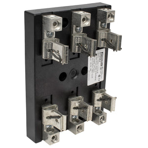 The 61038J is a 3-pole Class J fuse holder from Ferraz Shawmut (Mersen), engineered for secure mounting of 600 V AC/DC fuses in industrial control and power distribution systems. Rated for up to 100 amps, it features rugged, open-style construction with box lug terminals that support a wide wire range (6 AWG to 2/0 AWG), allowing both copper and aluminum conductors. Designed for high-dielectric performance and ease of installation, the 61038J is UL and CSA certified, making it a trusted choice for panel builders and OEMs. Despite being discontinued, it remains a popular component in legacy and retrofit applications.