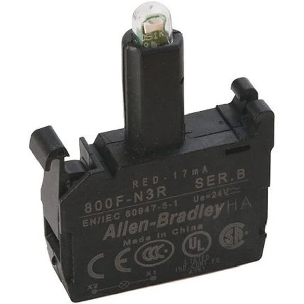 The Allen-Bradley 800F-N3R is a Power Module with a red LED, latch mount, and operates on 24V AC/DC. This compact and versatile module serves as a visual indicator in industrial control panels, providing clear and conspicuous signaling for specific conditions or events. The latch mount design ensures secure installation, while the 24V AC/DC power supply enhances compatibility with standard industrial control systems. The red LED offers a reliable and easily visible status indication, contributing to efficient monitoring and diagnostics in diverse automation applications.