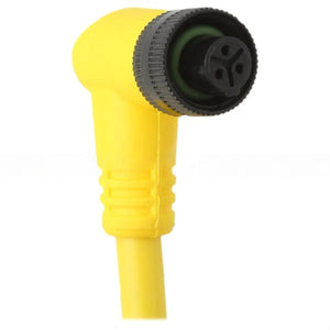 The 889R-R3AEA-10 is a durable 3-pin cordset with a right-angle AC Micro (Dual Key) female connector for quick-disconnect applications. Its robust 10-meter PVC cable is yellow, unshielded, and built to automotive standards for industrial environments.