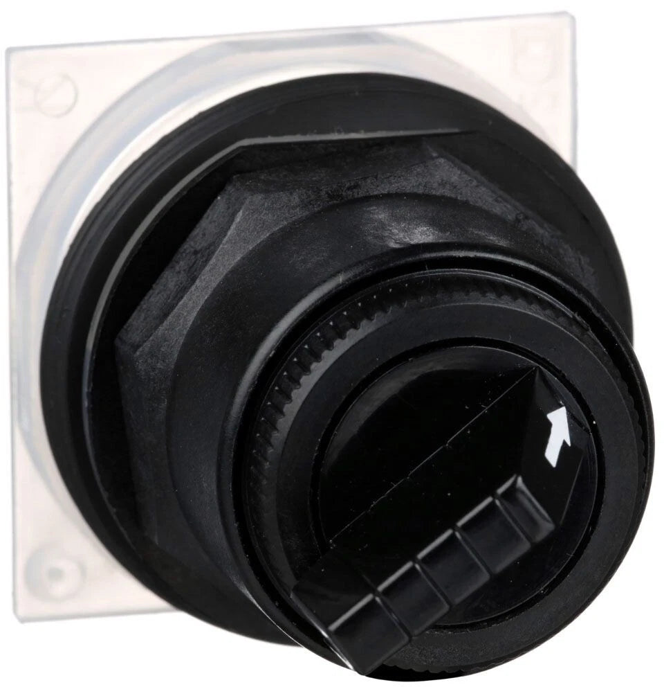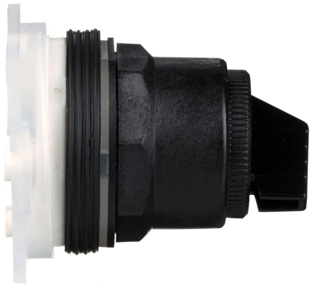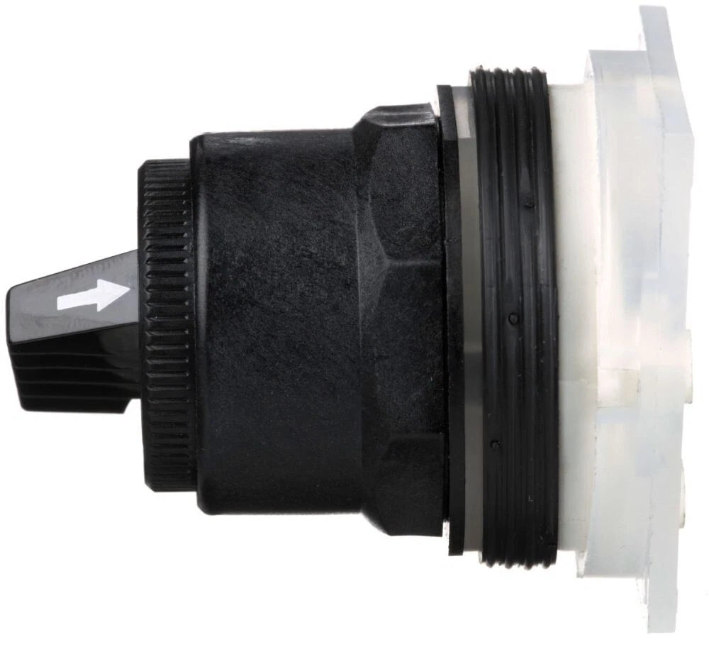 The 9001SKS11B is a selector switch head from Schneider Electric’s Harmony 9001SK series, which is known for its durability and modular design. This model supports a 2-position configuration and is compatible with 30 mm panel cutouts. It is specifically designed without a contact block, making it suitable for integration with modular contact accessories as needed. With an IP66 and NEMA 4X protection rating, it ensures reliable operation in washdown and corrosive environments, complying with global standards including UL, CSA, and CE.