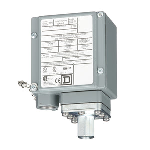 The Square D 9012 pressure switches are control circuit rated devices used in pneumatic or hydraulic systems on a wide variety of machine and process applications to protect the equipment and control or monitor the system pressure. A variety of products are available that include Open, Nema 1, Nema 4, and Nema 7,9 enclosures; single stage, dual stage, and differential switches.