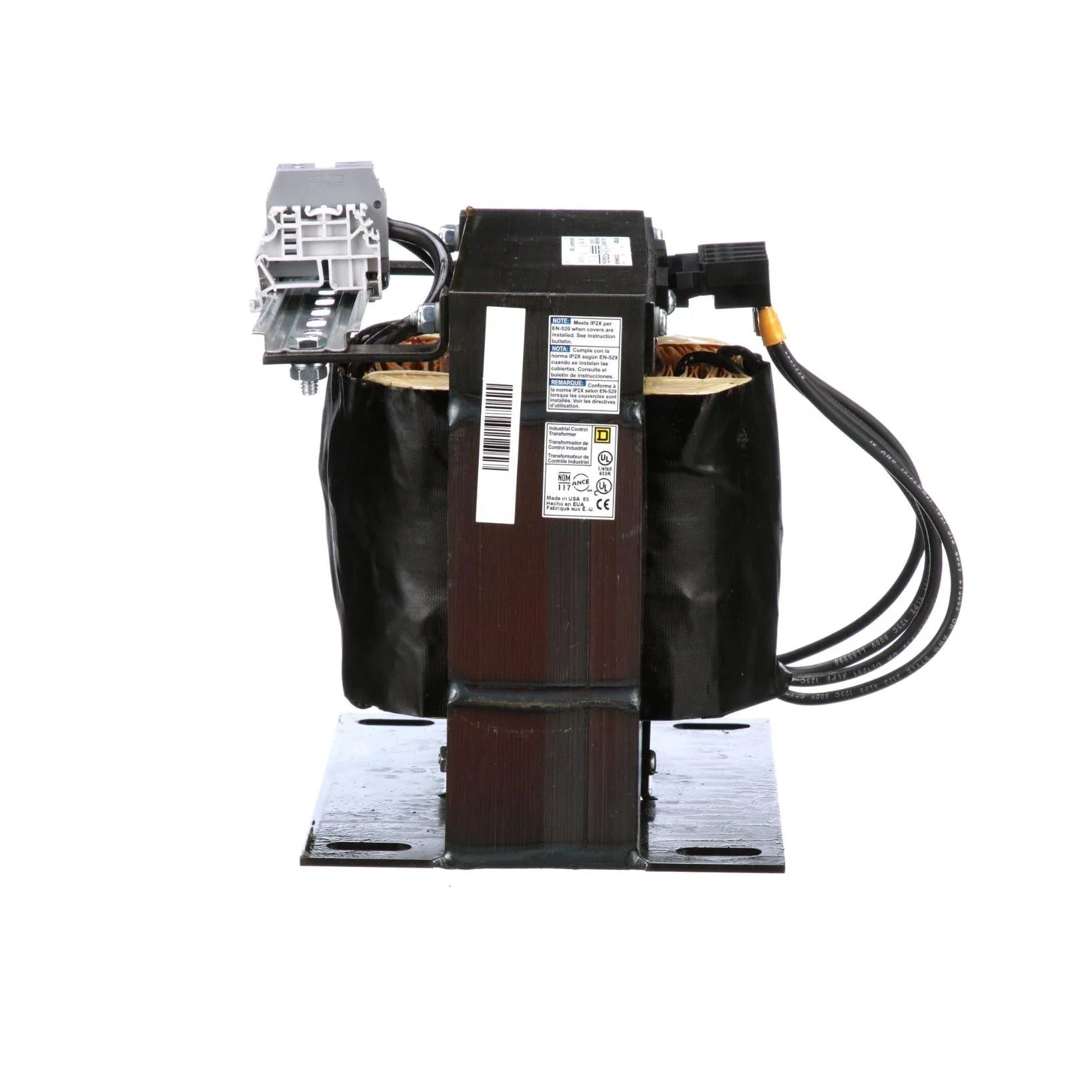 The Square D 9070T3000D1 control transformer has a power rating of 3000VA and operates in a single-phase configuration. It features a primary voltage of 220 x 440V and a secondary voltage of 110V. This transformer complies with UL, CE, and CSA standards, ensuring safety and reliability.