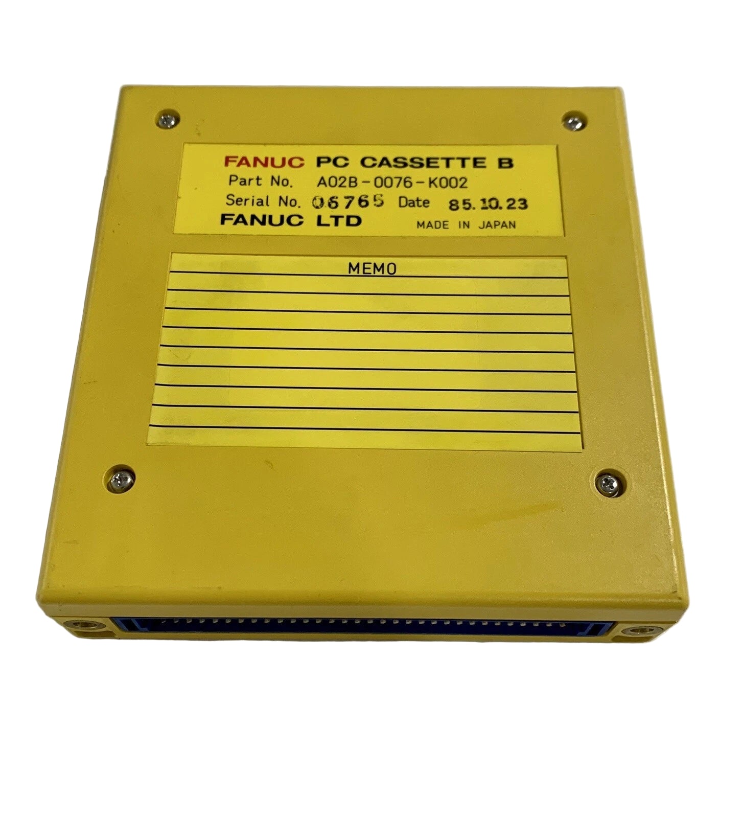 The FANUC A02B-0076-K002 is a 128K PC cassette (Model B) designed for CNC data storage and backup. Using EPROM memory with RS-232C communication, this cassette provides reliable data transfer and long-term retention in FANUC machine control systems.
