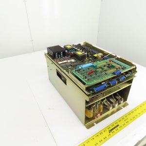 The A06B-6044-H008 is a GE Fanuc AC spindle servo unit from the Alpha series, designed for high-precision spindle control in CNC applications. It operates with a power supply of 283-325 VAC, 3-phase, 50/60 Hz. The unit has a rated output of 4.0 kW and can achieve a maximum output of 5.5 kW, delivering reliable performance for demanding tasks. It provides a continuous output current of 11 A and a maximum output current of 13 A, with a speed control range from 0 to 6000 rpm. The unit measures 290 mm (W) x 290 mm (H) x 160 mm (D), making it compact yet powerful. It functions within an ambient temperature range of 0 to 45°C (32 to 113°F) and can operate in environments with up to 90% humidity (non-condensing). Designed for indoor use, it includes a built-in serial interface (RS-232) for seamless communication and integration into CNC systems, enhancing spindle accuracy and operational efficiency.