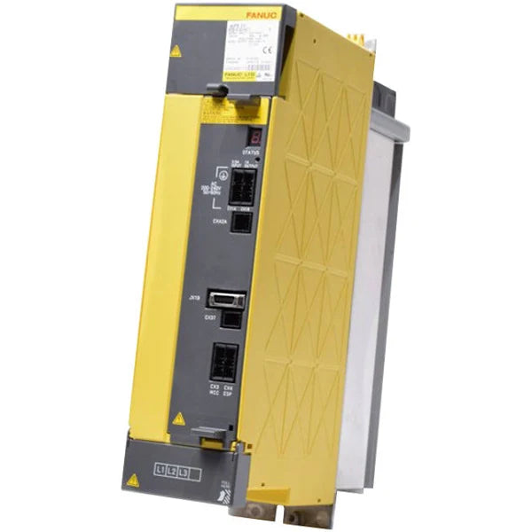 The GE Fanuc A06B-6140-H011 is a high-capacity power supply module designed for servo amplifiers and industrial automation systems. This model, part of the ai PS 11 range, provides reliable power with a rated input of 200-240V and a current rating of 49 amps at 200V. It delivers a rated output voltage range of 283-339V and has a substantial power rating of 13.2 kW, ensuring efficient and stable power supply for demanding applications. The A06B-6140-H011 is engineered for seamless integration into control systems, supporting enhanced performance and stability in servo-driven automation environments.