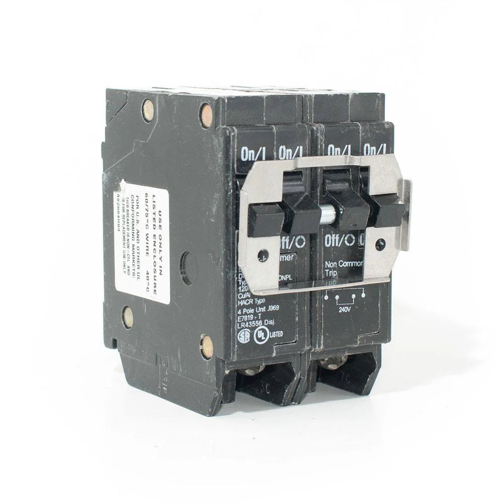 The BR220220 features a plug-in breaker style, ensuring easy and secure installation in compatible electrical panels. With its quad pole configuration, it offers the flexibility to manage multiple circuits within a compact design, making efficient use of panel space.