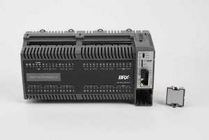 The BX-DM1E-36ED23-D is a sophisticated VDC Logic I/O brain/interface module designed for use in programmable logic controllers (PLCs) and machine control applications. This module operates within a power requirement of 12-24 VDC, ensuring flexibility in various industrial environments. It is engineered to support both discrete and analog input/output operations, making it a versatile component in automation systems.