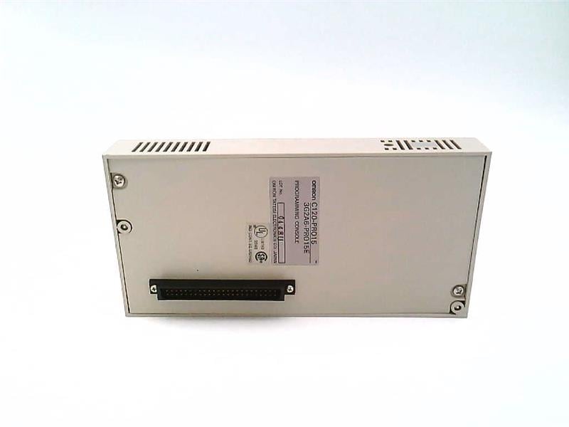 The Omron C120-PR015-E (PRO15) is a handheld programming console for SYSMAC series PLCs. It features a keypad and display for on-site programming, editing, and monitoring, enabling efficient PLC control and maintenance in industrial settings.